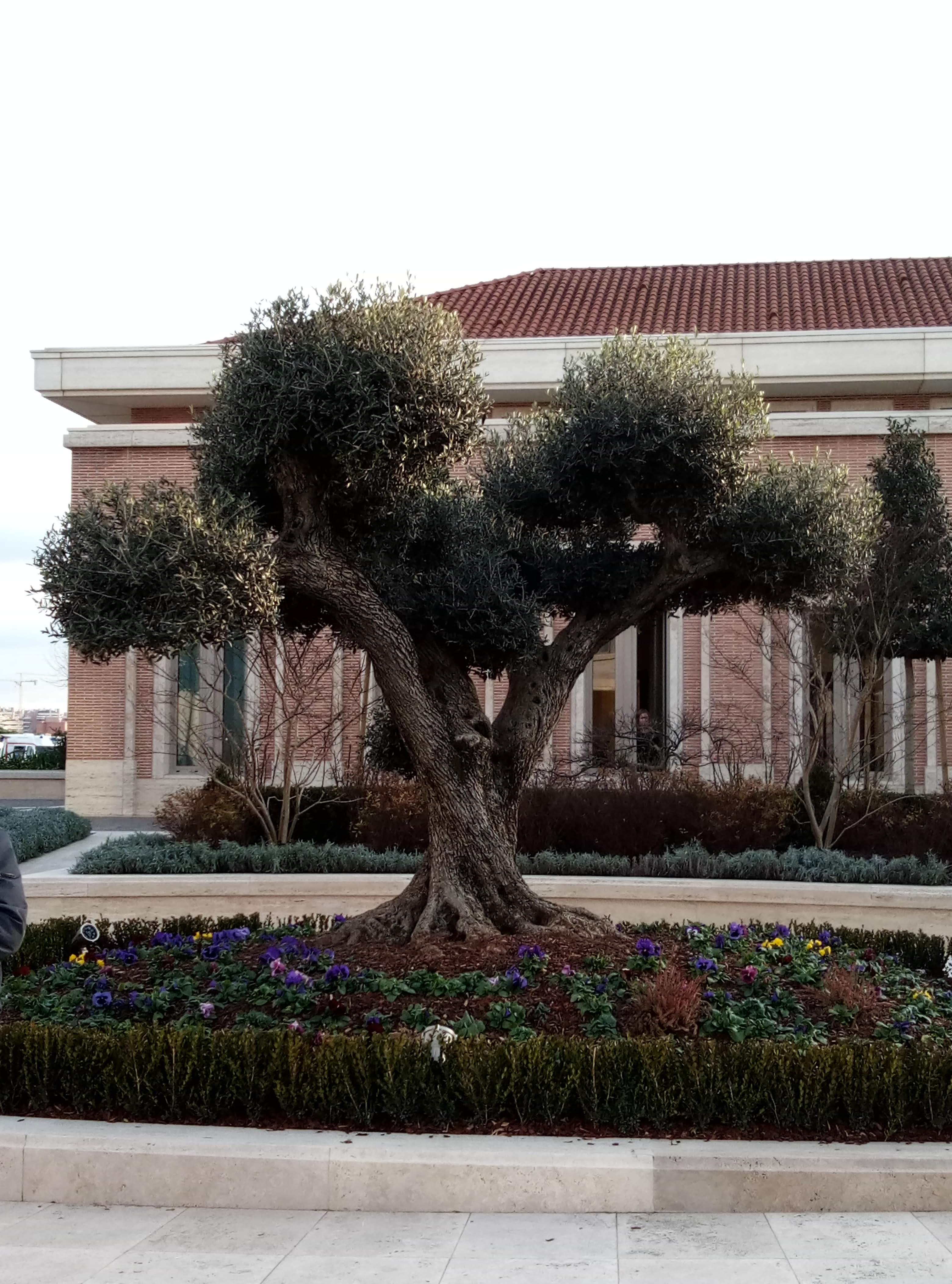 Alors que je me promenais dans un jardin à Rome, j’ai été fascinée par un olivier qui se tenait avec beaucoup de dignité au centre d’une petite cour pavée.